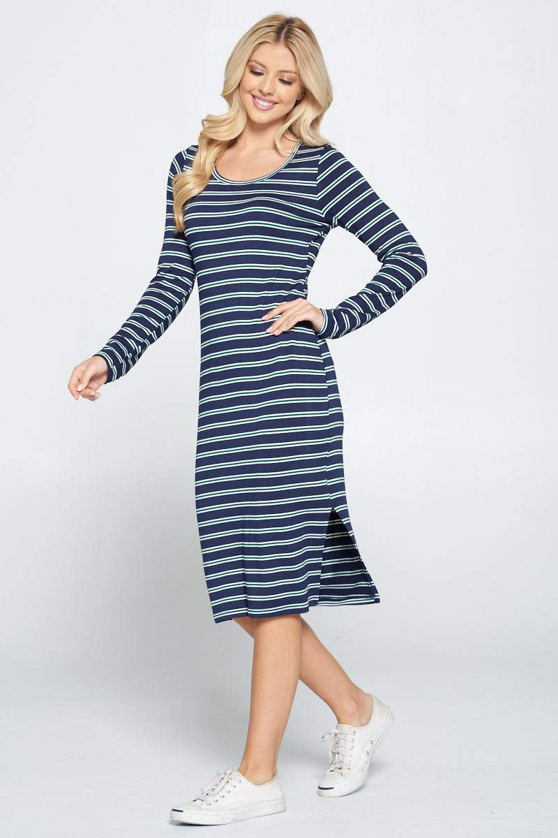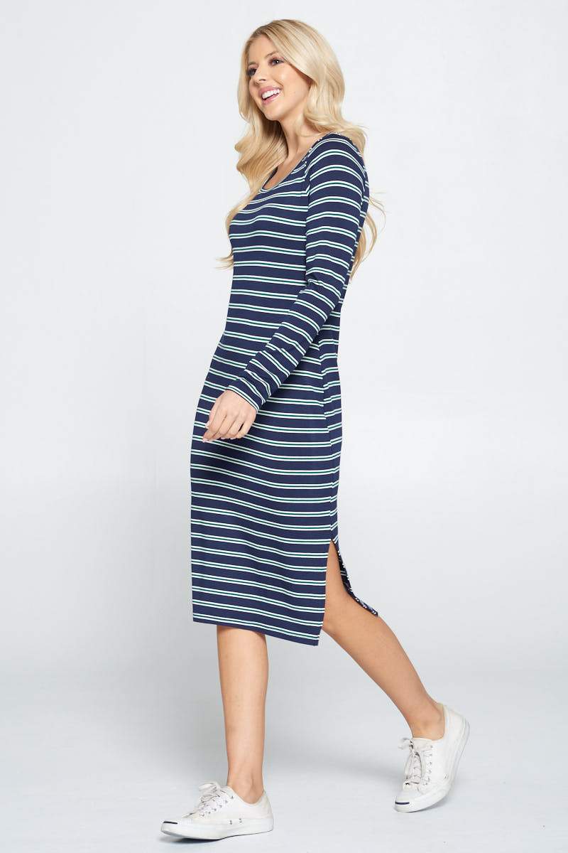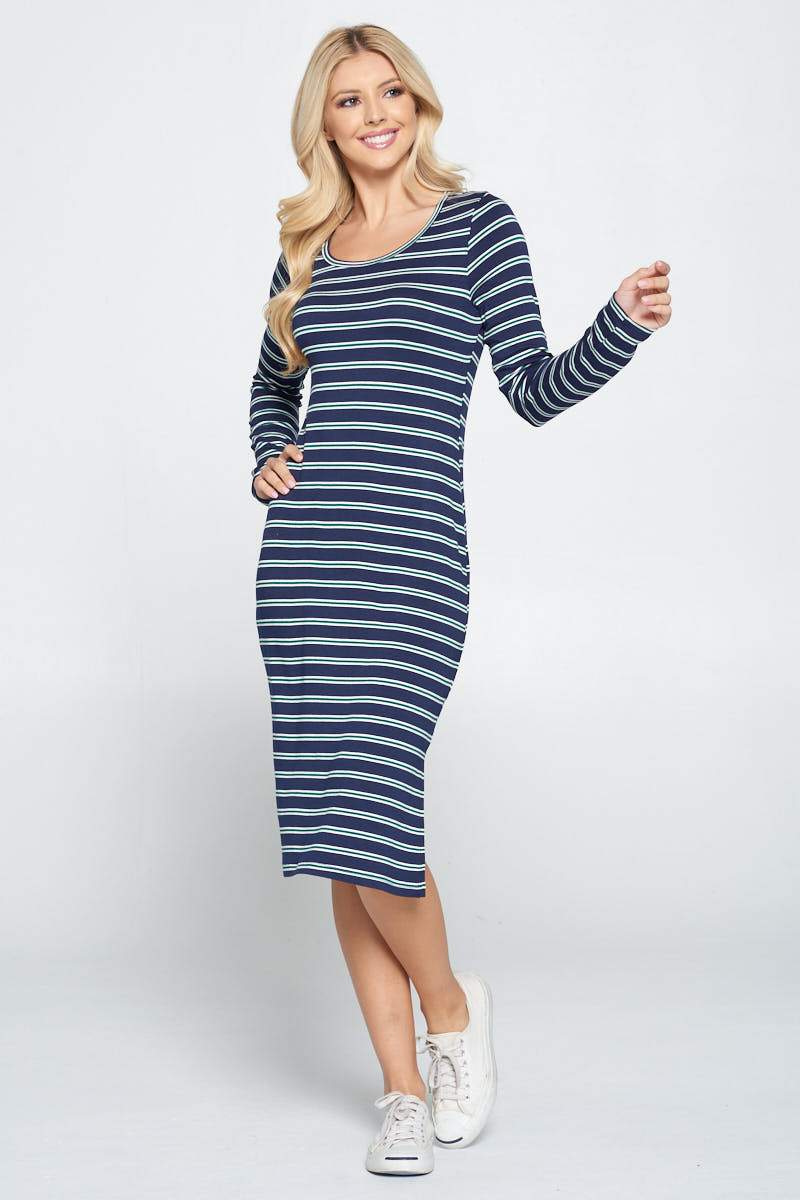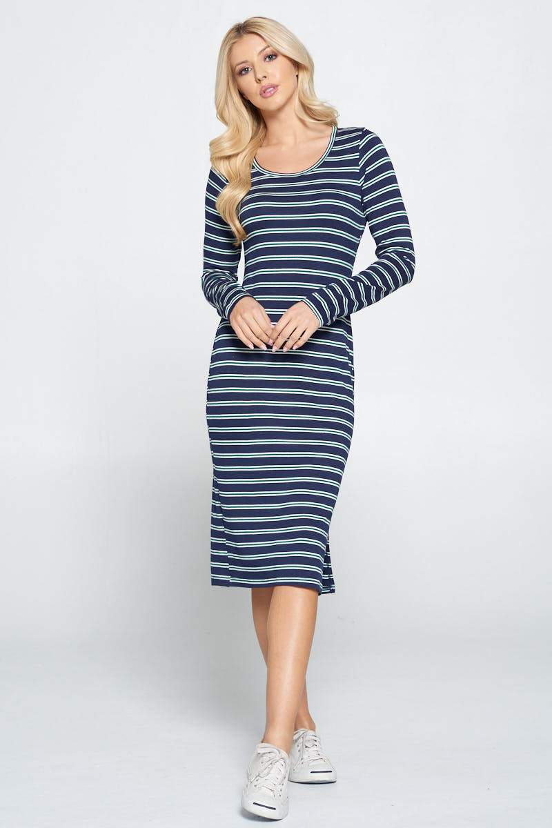 Striped Relaxed Bodycon Midi Dress with Slit