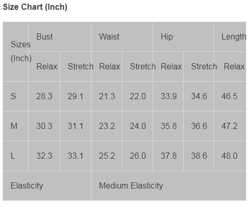 Sizes (Inch) Bust Waist Hip Length