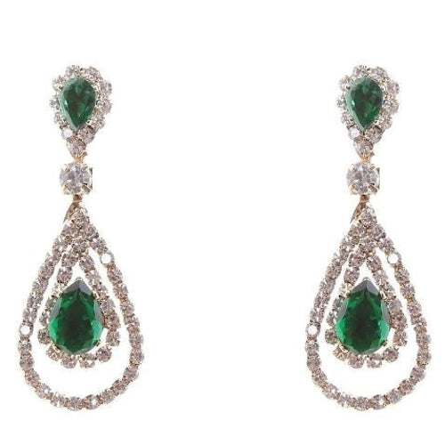 Linked Pear In Pear Dangle Rhinestone Earrings