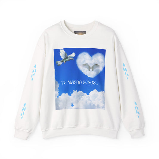 TE MANDO BESOS Heavenly Love Sweatshirt, Spiritual Crewneck, Angelic Gift, Cloud Art Pullover, Heartfelt Comfort Wear, Perfect for Love Celebrations