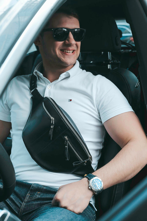 Extra Large Crossbody Sling for Women and Men, Black Soft Leather Bum