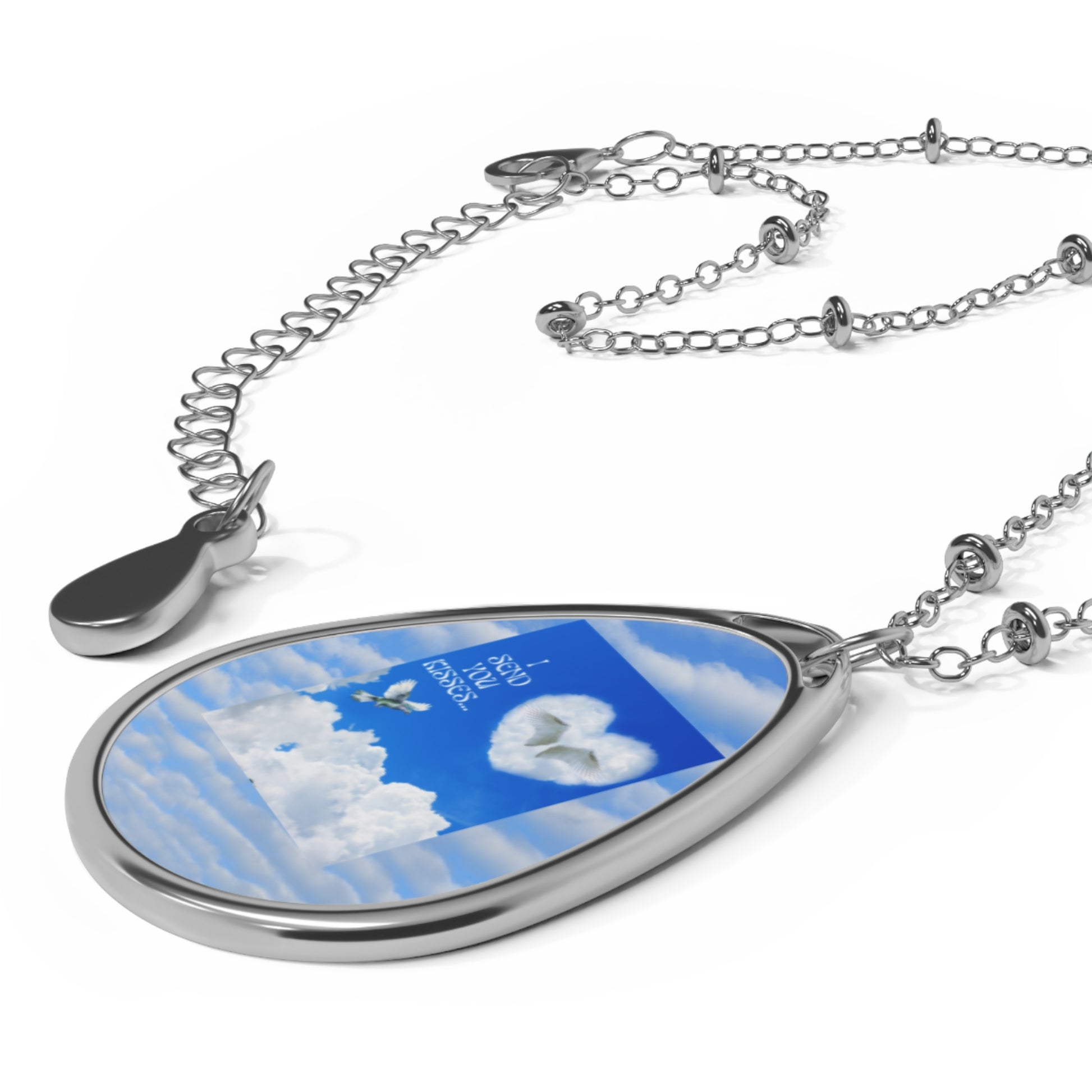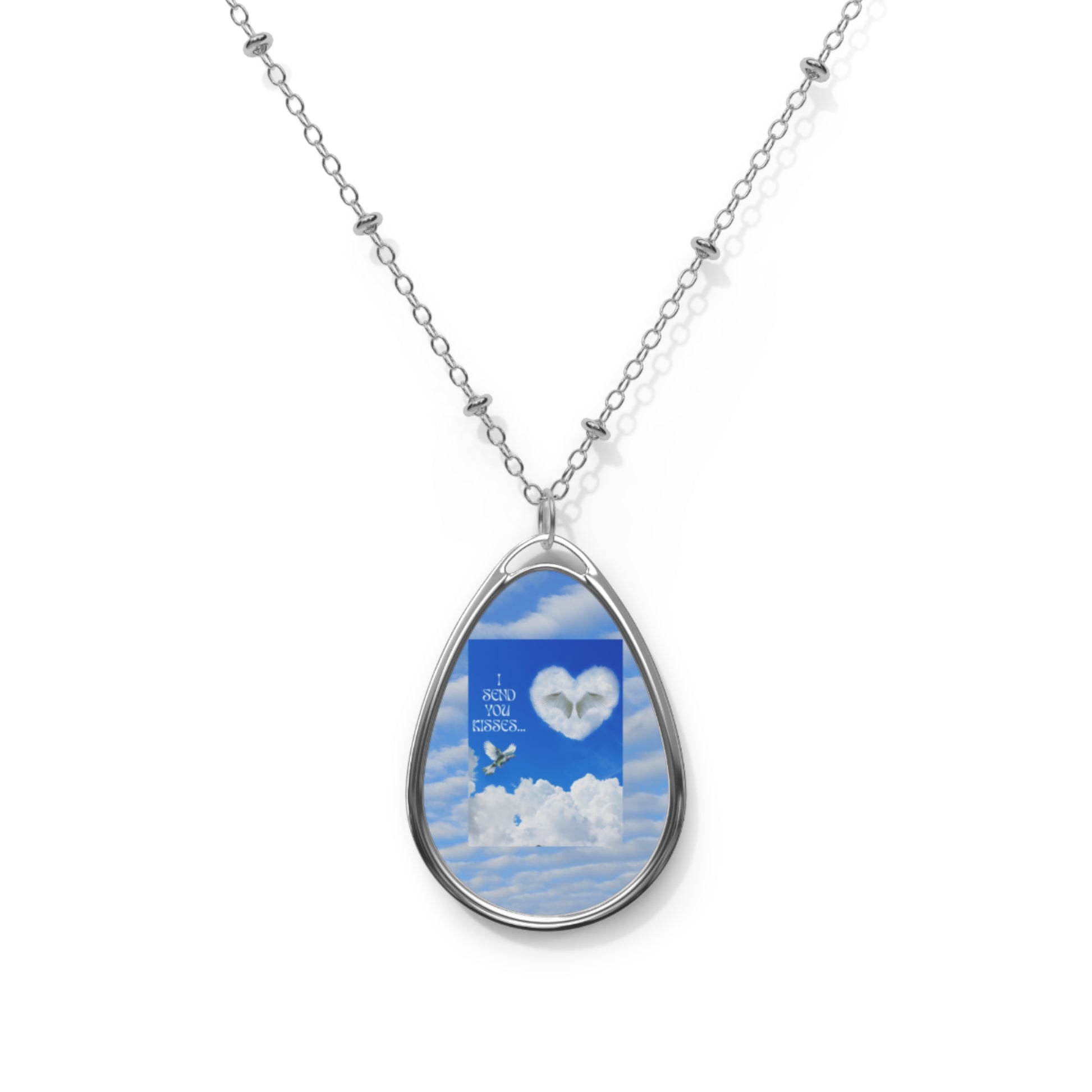 I SEND YOU KISSES Sky Heart Oval Necklace - Meaningful Gift, Inspirational Jewelry, Cloud Design, Birthday Gift, Mother's Day, Keepsake Pendant