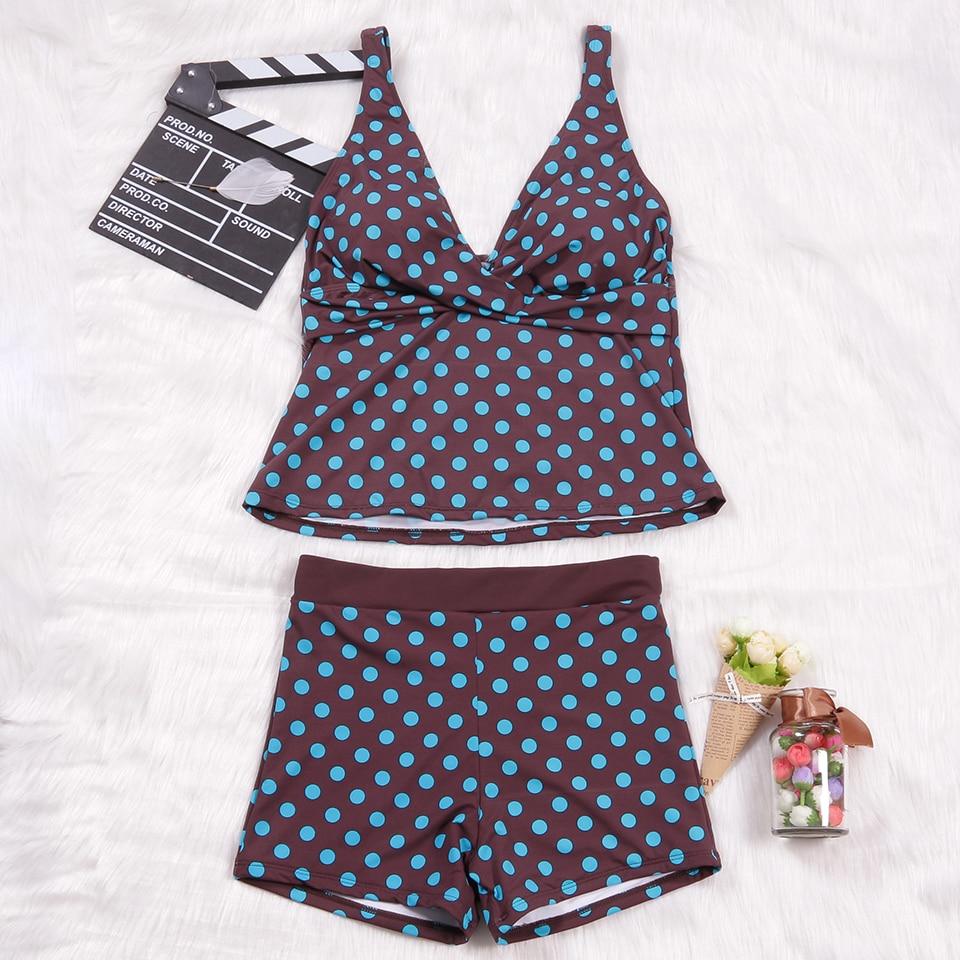 New Plus Size Swimwear Women Swimsuit Two Pieces Tankini Padded Bathing Suit Polka Dot High Waist Bikini Set Beachwear