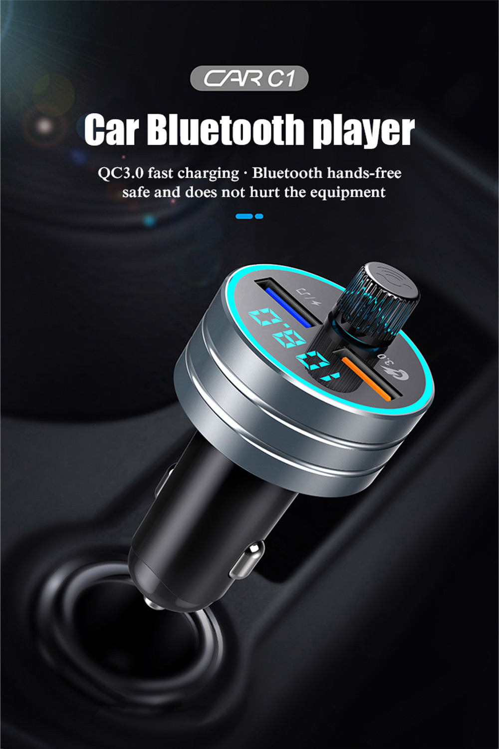QC 3.0 Dual USB Fast Car Charger with Bluetooth Mp3 Player