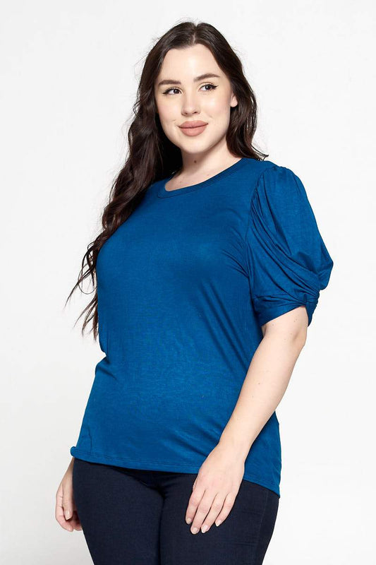 Solid Short Sleeve Top with Scrunched Sleeves