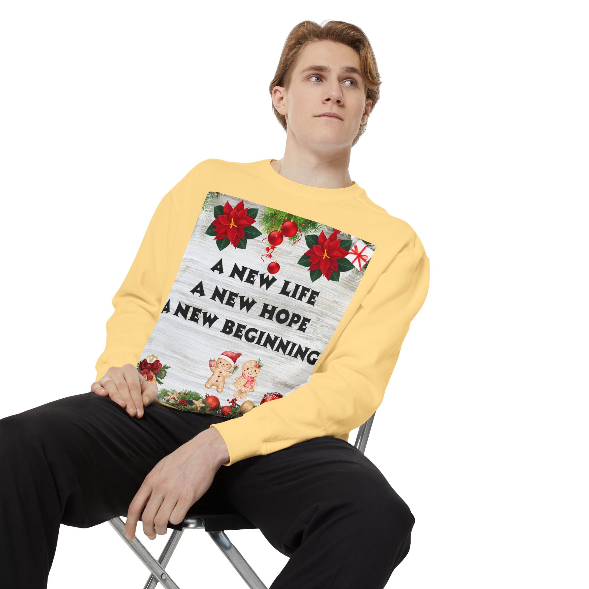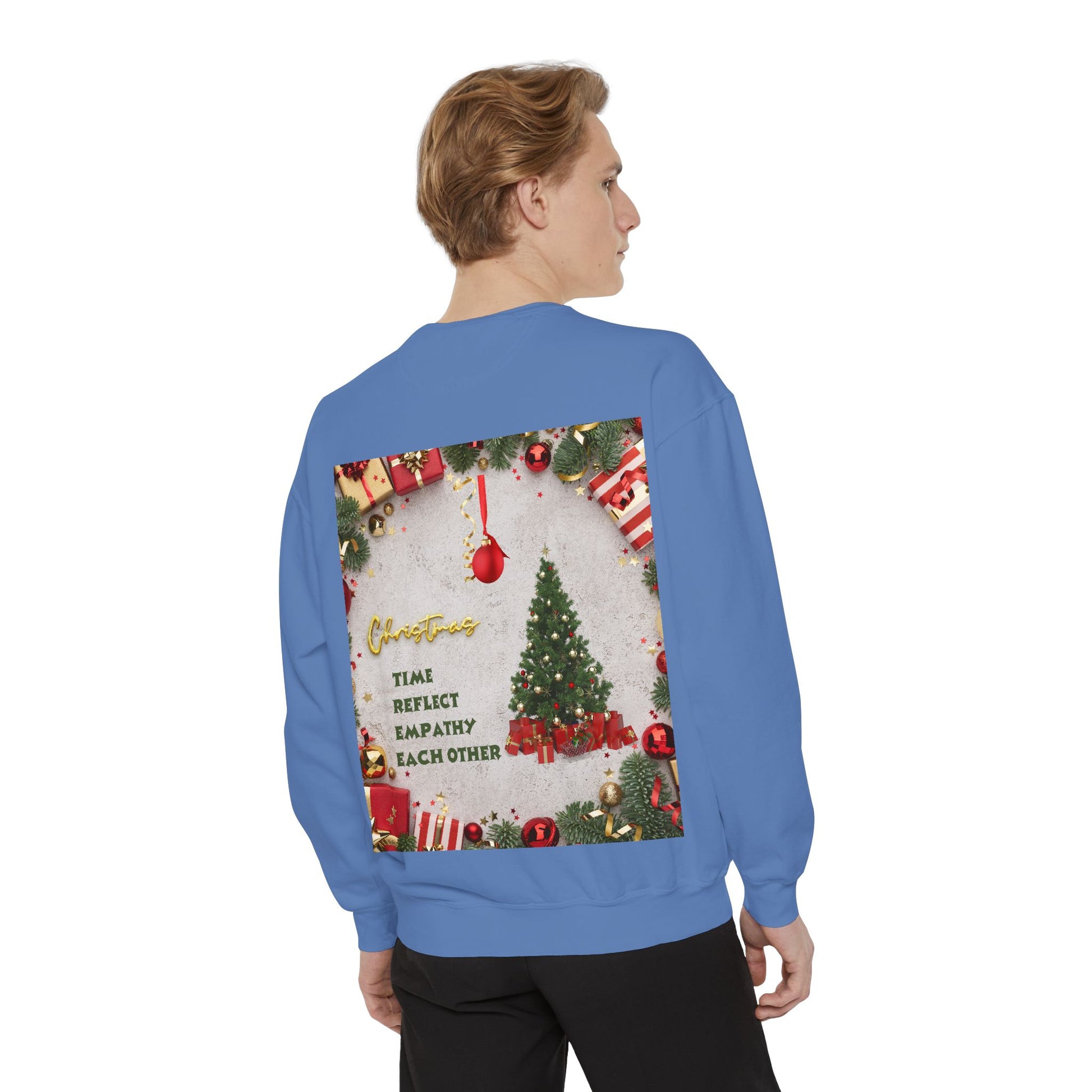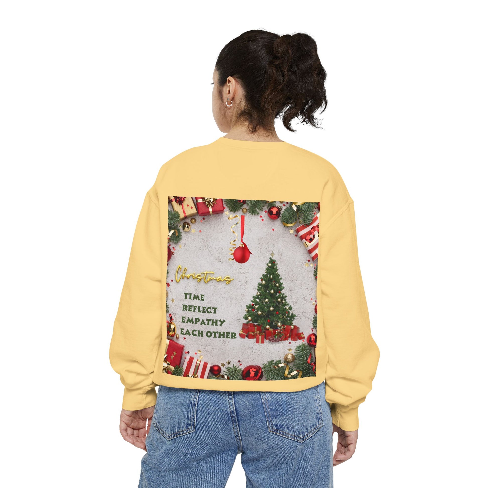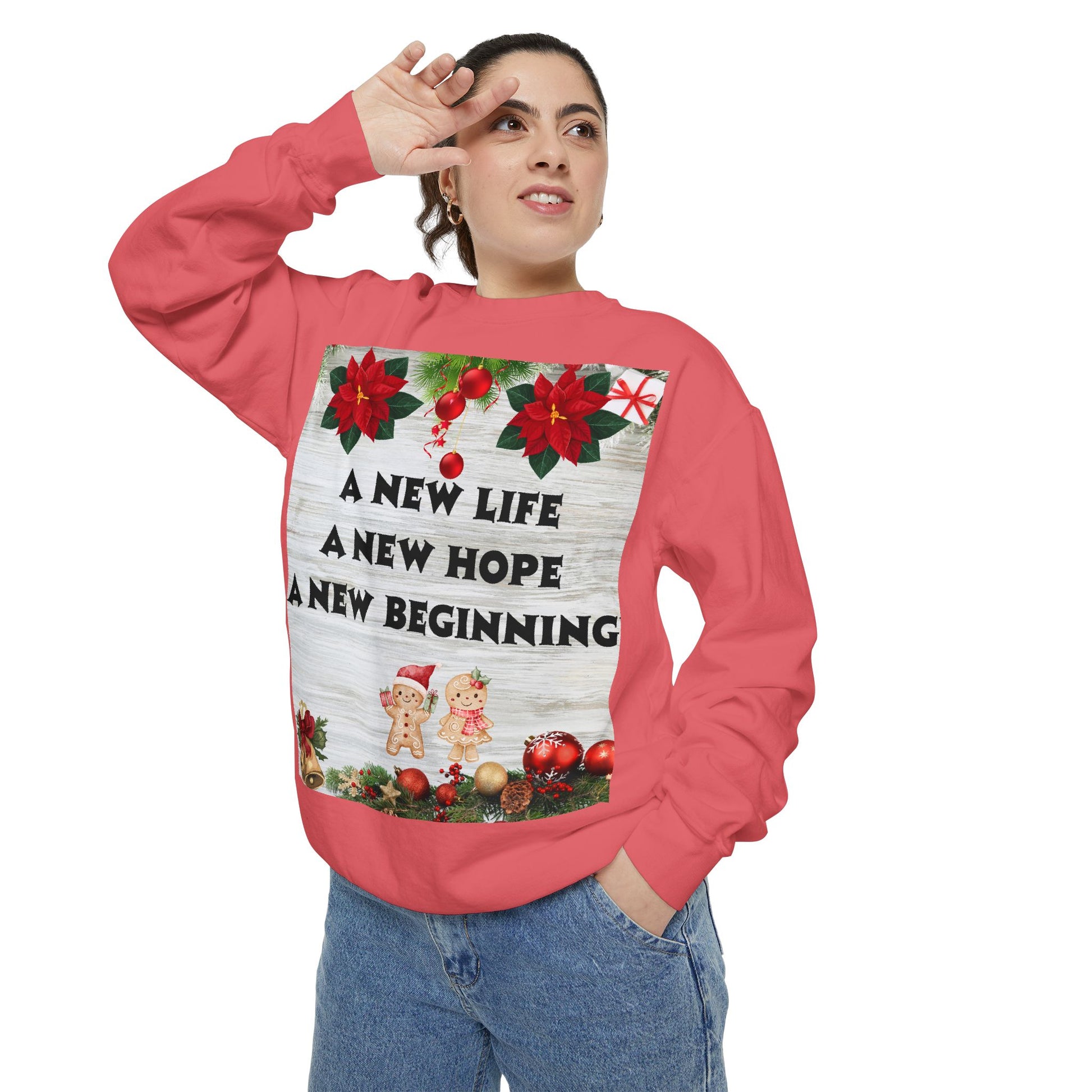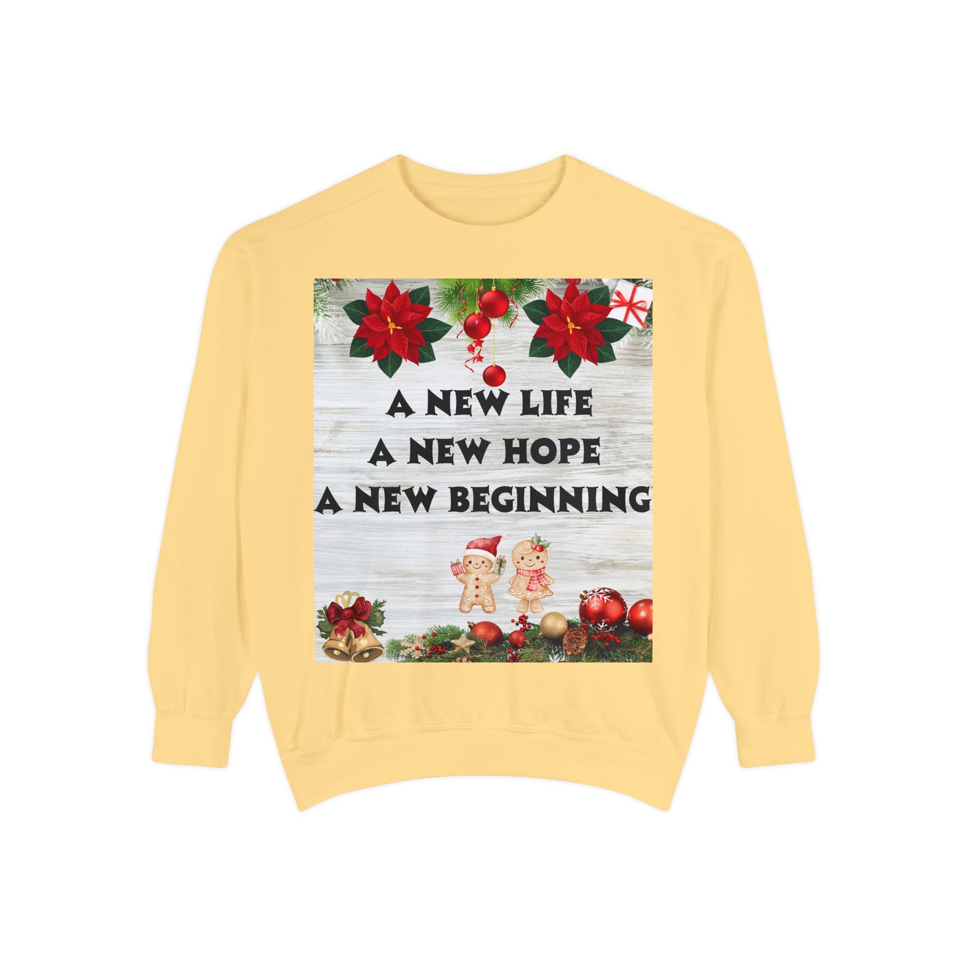 Embrace the warmth of the holiday season with this cozy unisex garment-dyed sweatshirt. Designed for comfort and relaxation, it's perfect for snuggling up during chilly winter evenings or festive gatherings. The beautiful designs encapsulate the spirit of Christmas, making it a delightful addition to your wardrobe. This sweatshirt is ideal for anyone looking to spread joy and holiday cheer, whether at home, a party, or out with loved ones. Perfect for Christmas celebrations, family gatherings, and gift-giving occasions, it brings a sense of warmth and nostalgia to every moment. Celebrate a new beginning and reflect together with this heartfelt piece.