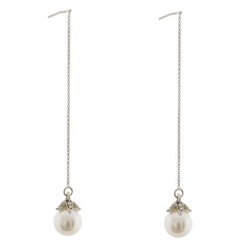 Wedding Plating Faux Pearl Long Teardrop Earrings