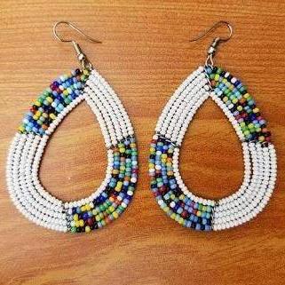 White handmade maasai beaded drop and dangle Earrings