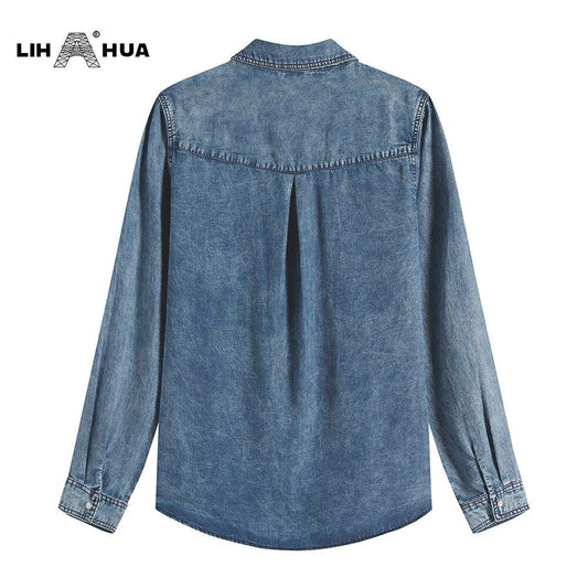 Women's Blouses Plus Size Cotton Woven Denim Shirt Button Up Long